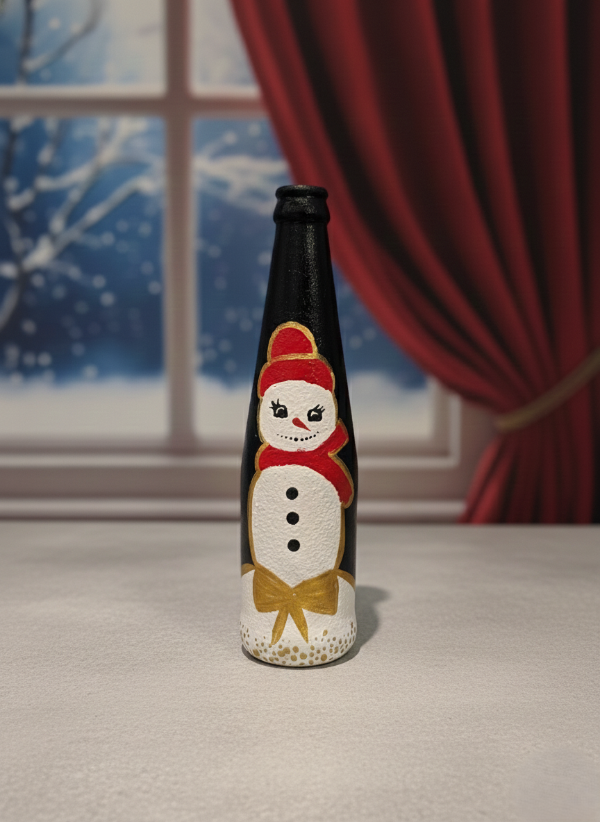 Christmas Snowman Hand Painted Decorative Bottle | Festive Home Décor & Gift Item