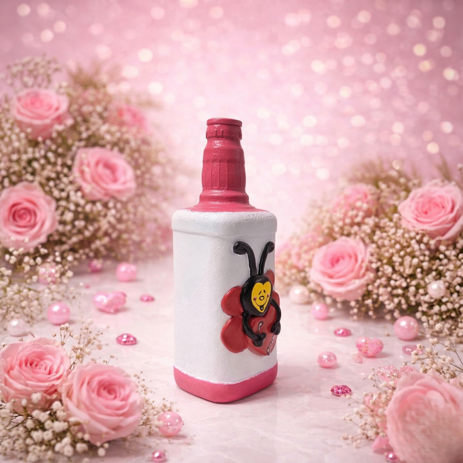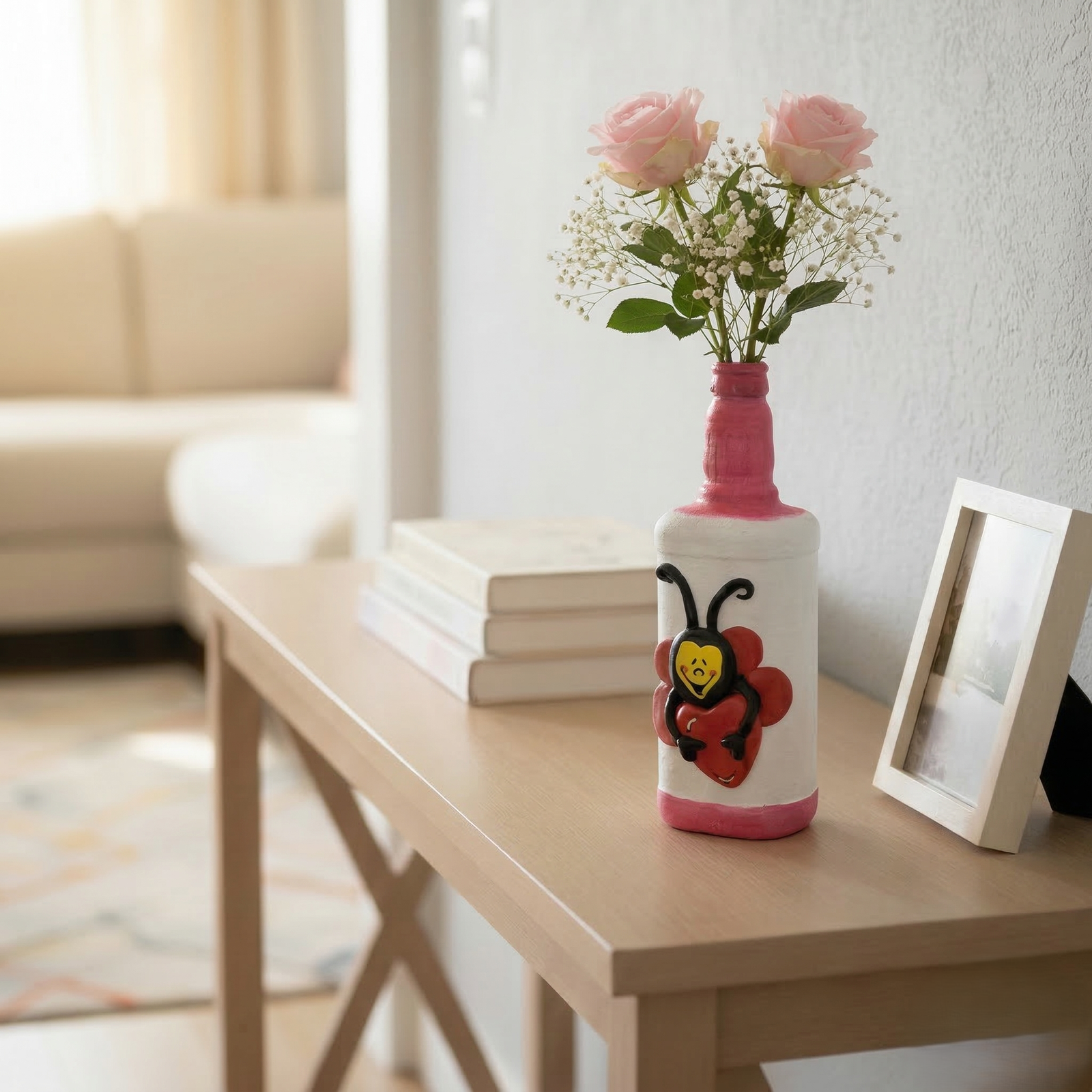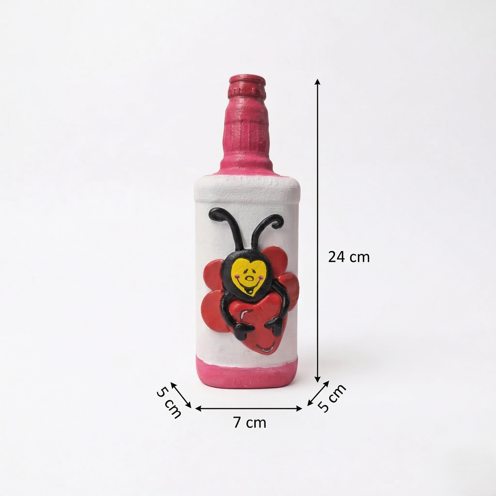 Enhance your interior décor with this beautiful handmade decorative bottle vase featuring an adorable love bee design. Carefully crafted and artistically painted, this decorative vase adds a unique blend of creativity, romance, and charm to your home.