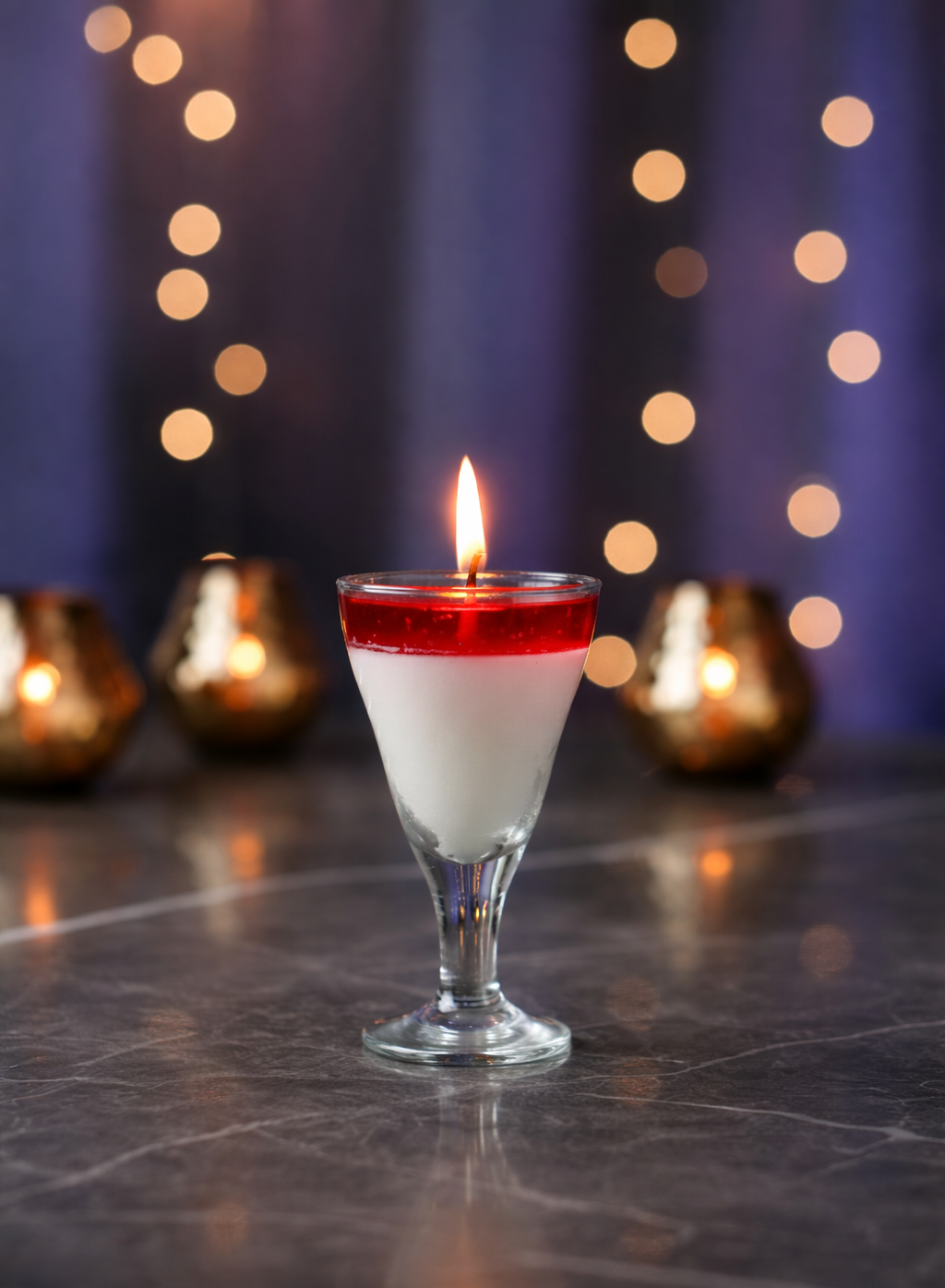 Enhance your space with this beautiful layered decorative gel candle in glass, designed to add elegance and warmth to any environment. Featuring a stylish red and white layered design, this candle creates a calming glow that elevates home décor instantly.