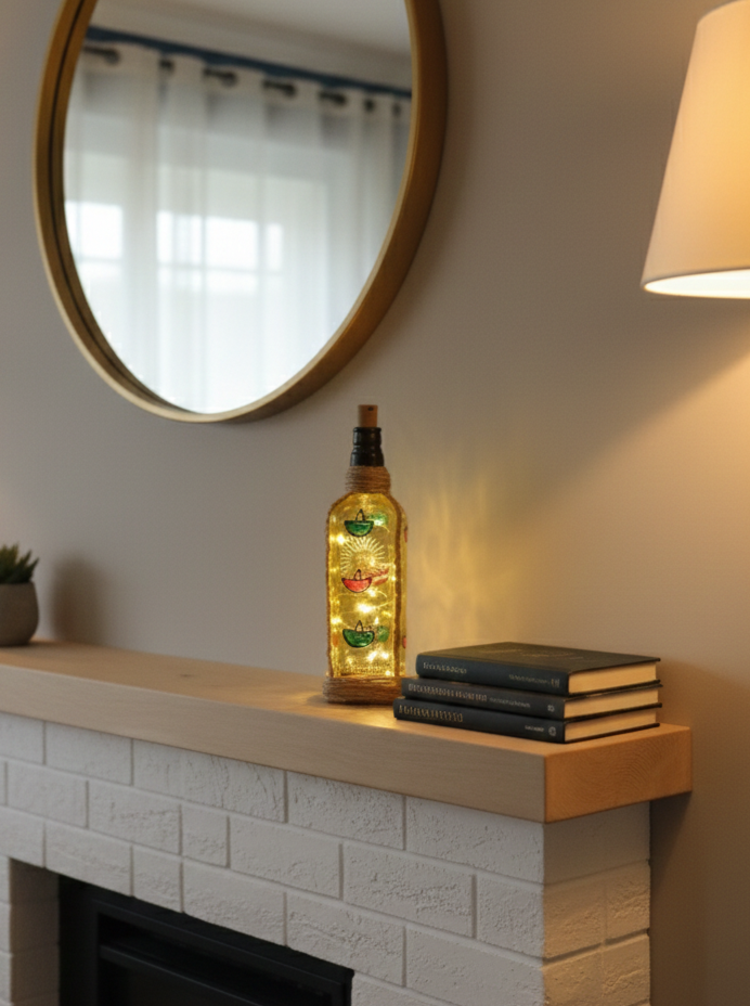 It also makes a thoughtful gift for Diwali, housewarming ceremonies, anniversaries, and festive celebrations. Combining traditional aesthetics with modern décor, this LED bottle lamp is an elegant addition to any home.