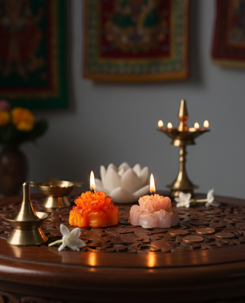 Ideal for Diwali decoration, pooja rooms, meditation corners, living rooms, bedrooms, dining tables, cafés, and aesthetic photo setups, these candles instantly elevate the ambience. Their refined look also makes them a thoughtful gift for festivals, birthdays, anniversaries, weddings, and housewarming occasions.