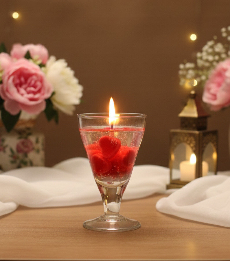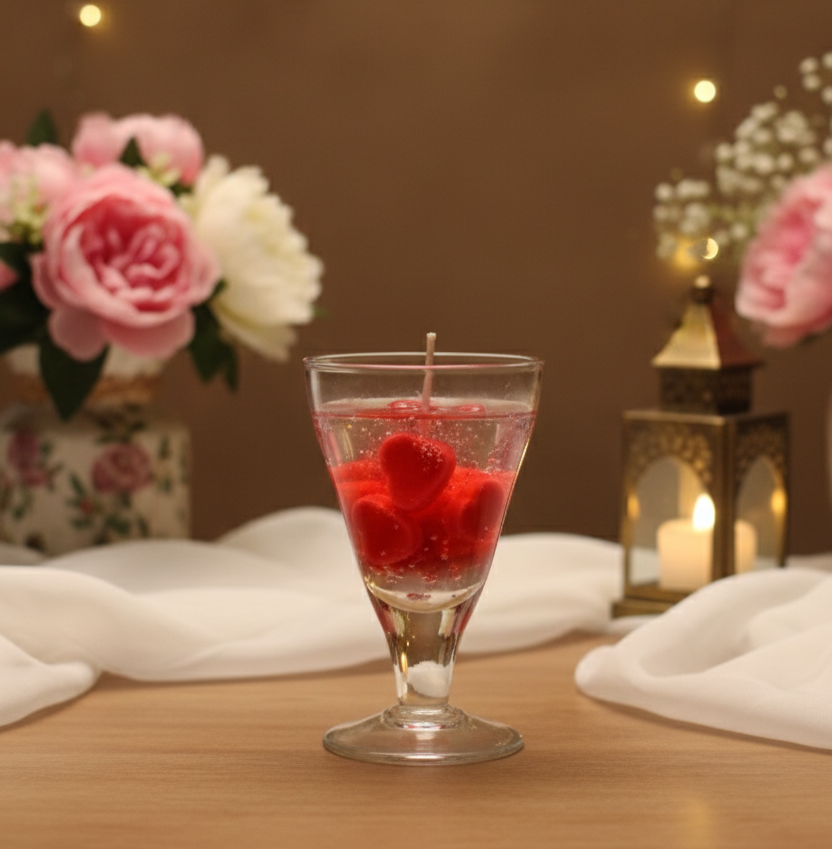 Add warmth, romance, and elegance to your space with this beautifully designed Heart Floating Gel Candle in Glass. Crafted with transparent gel wax and vibrant red heart elements, this candle creates a soothing glow that instantly enhances any setting.