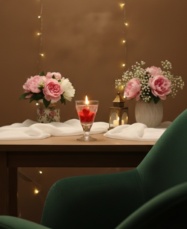 Perfect for romantic dinners, anniversaries, Valentine’s Day, weddings, birthdays, festivals, and home décor, this candle blends modern aesthetics with a soft, calming flame. The premium glass holder adds a classy touch, making it suitable for tabletops, bedrooms, living rooms, and decorative corners.
