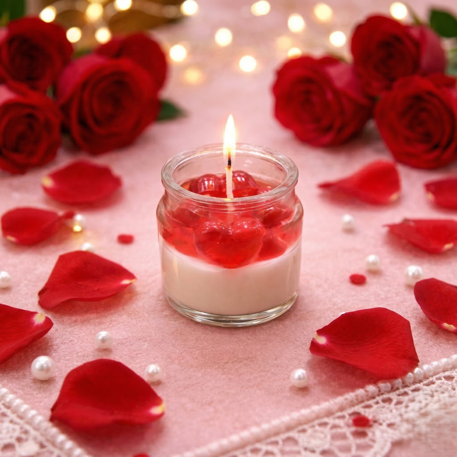 Romantic Heart Gel Candle in Glass Jar with Rose Petals Decor | Valentine Gift Candle