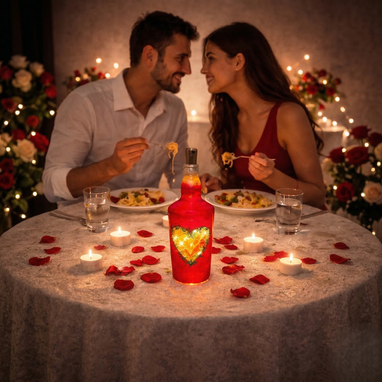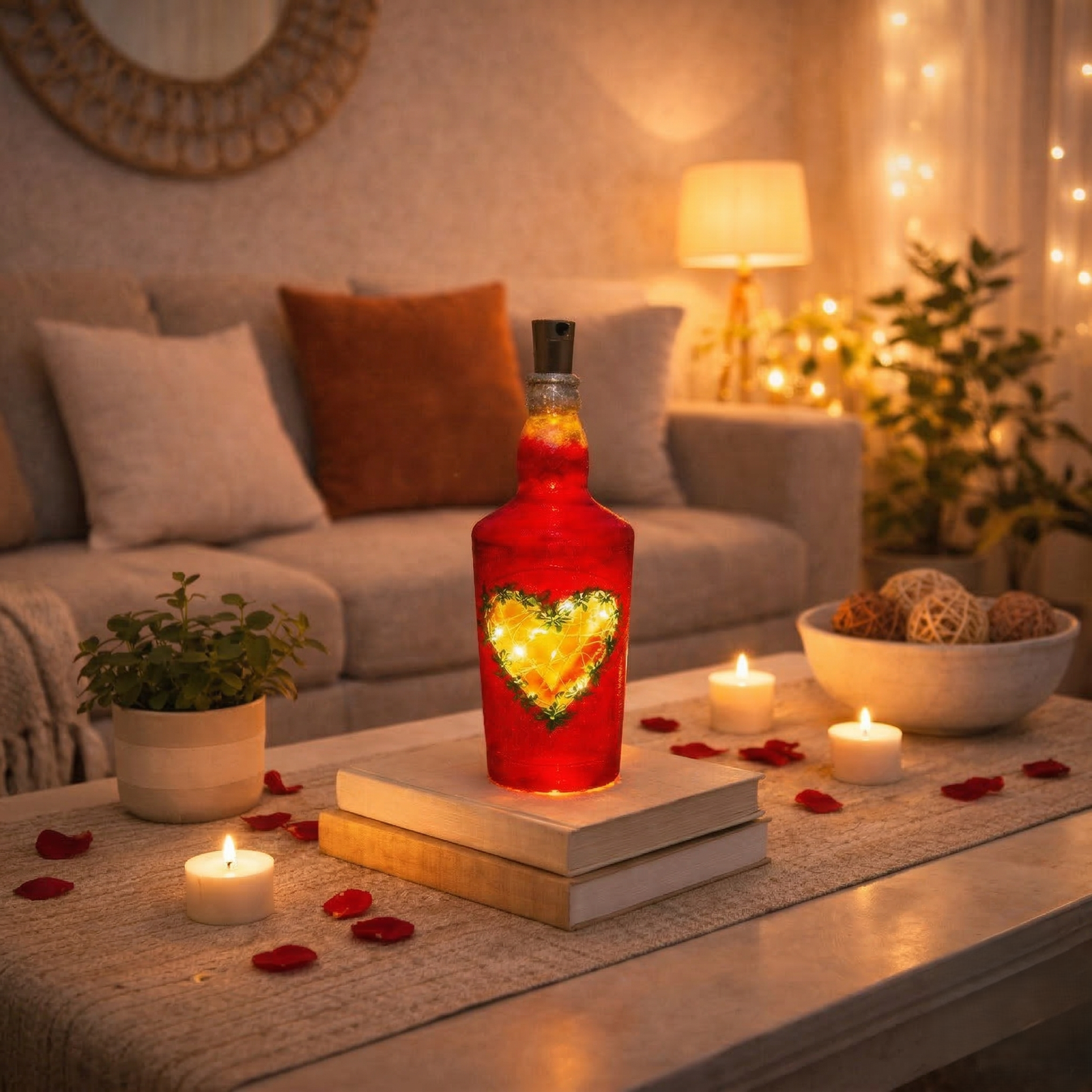Crafted to bring both charm and romance, this decorative bottle lamp works beautifully as table decor, night lamp, love theme decoration, or aesthetic home decor item.