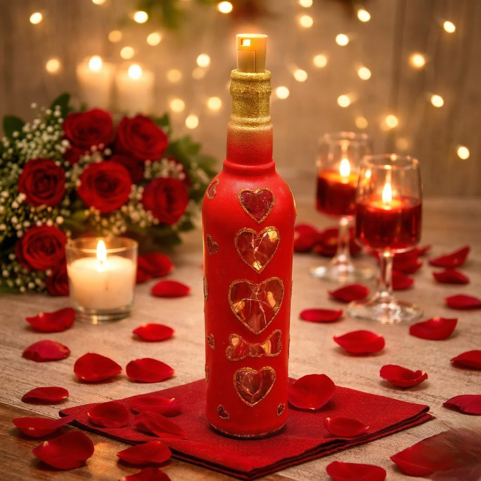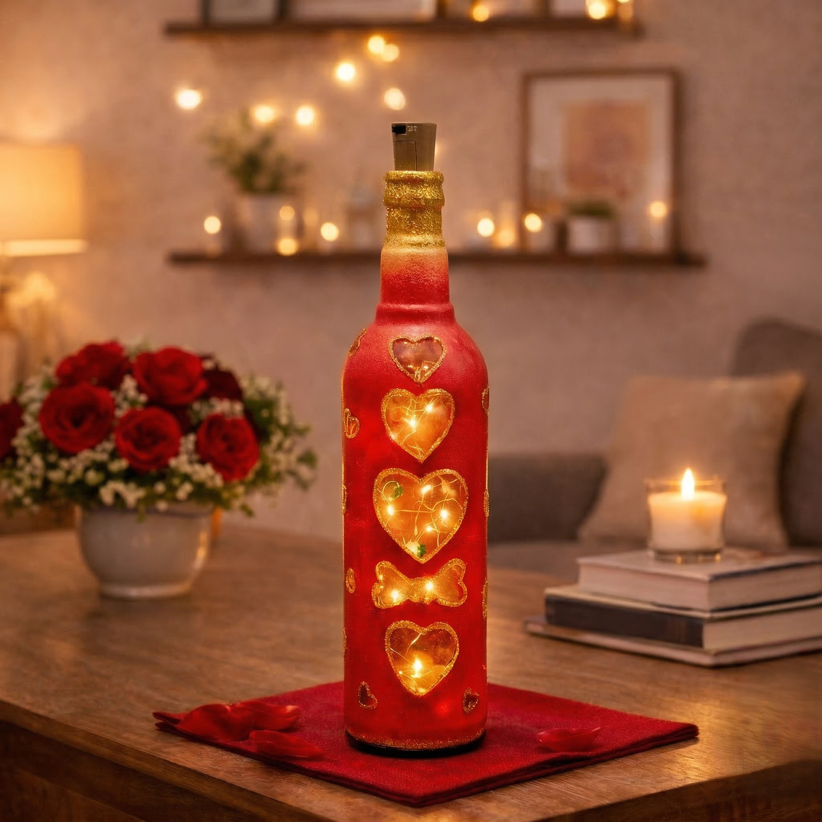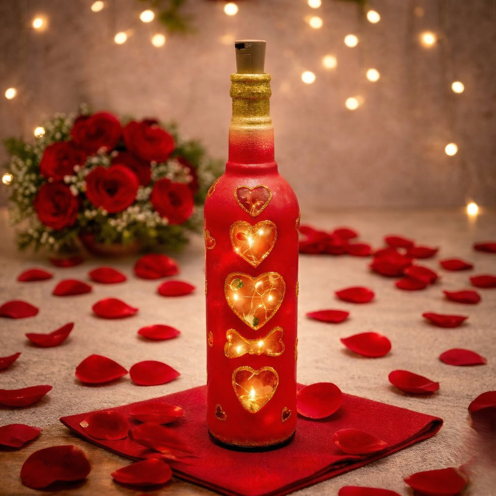 Bring warmth, love, and elegance into your space with this premium decorative LED bottle fairy light lamp.