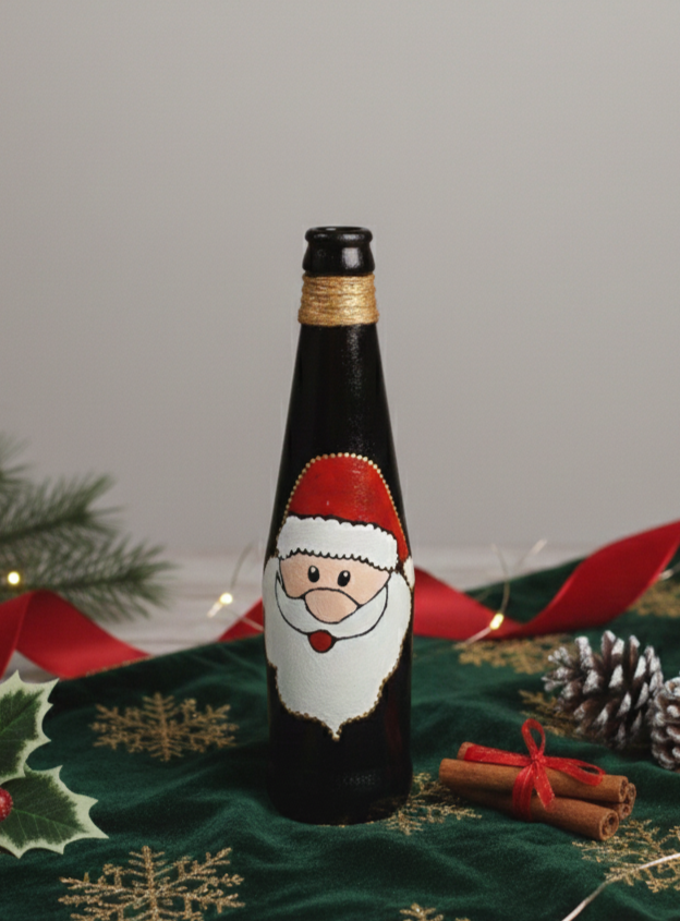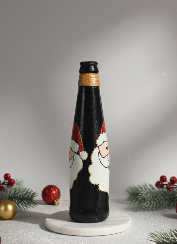 Santa Claus Hand Painted Decorative Bottle | Christmas Home Décor & Festive Gift Item